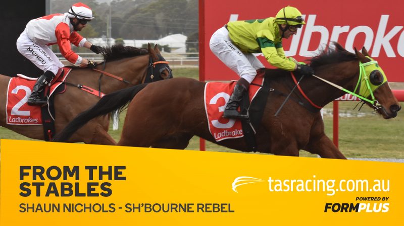 Hear about the chances of Sh’bourne Rebel in the Tasmanian Horse Transport Benchmark 66 Handicap on Sunday in Devonport in From the Stables.
